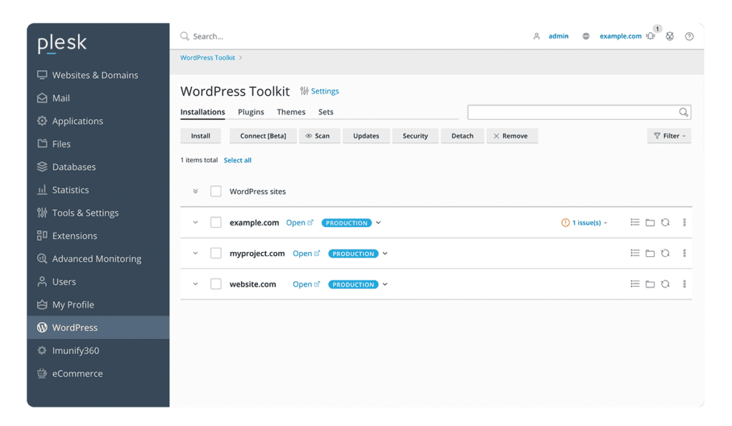 Absoluut. De WordPress Toolkit is standaard inbegrepen bij alle Plesk-servers van Let’s Serve. Je kunt hiermee nieuwe sites installeren, bestaande sites importeren, updates uitvoeren en beveiliging controleren met één klik.
